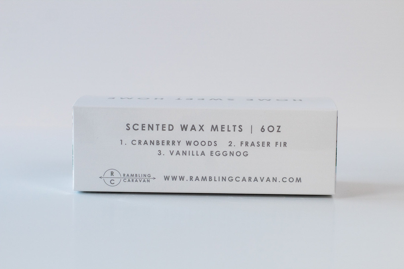 Christmas Caravan is apart of our Home Sweet Home Wax Melt Collection. Christmas Caravan contains 3 scented wax melts in the following fragrances: Cranberry Woods, Fraser Fir and Vanilla Eggnog. These can be used with tea-light warmers or electric warmers approved for wax melts.