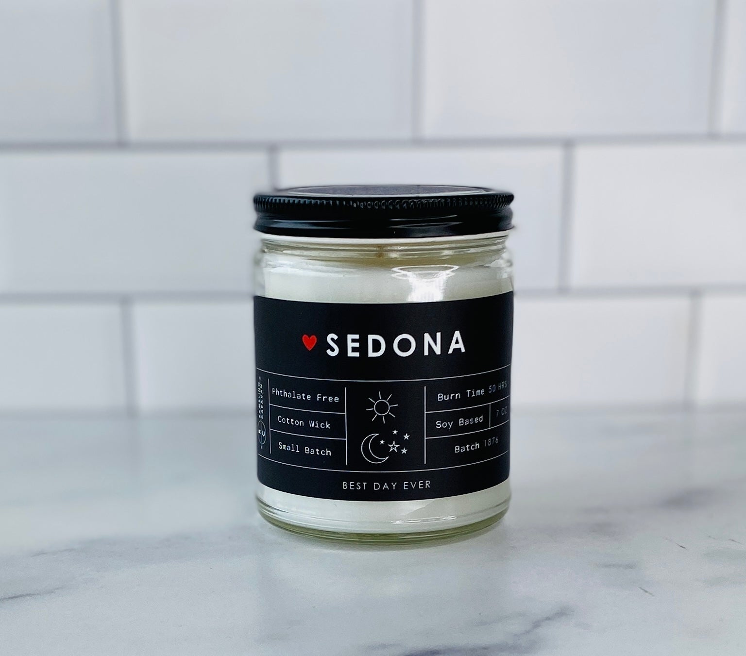 Sedona, Arizona Candle - Rambling Caravan candles are inspired by home, travel and adventure. Made from a soy/coconut based wax blend, the candles are hand poured in Virginia Beach, Virginia. We use phthalate free fragrances and have an assortment of fragrances from which to choose. Many of our candles have different color labels to choose from as well. We use cotton wicks with no zinc or lead. We do not use additives, nor scent enhancers or UV blockers. The burn time is approximately 50 hours.