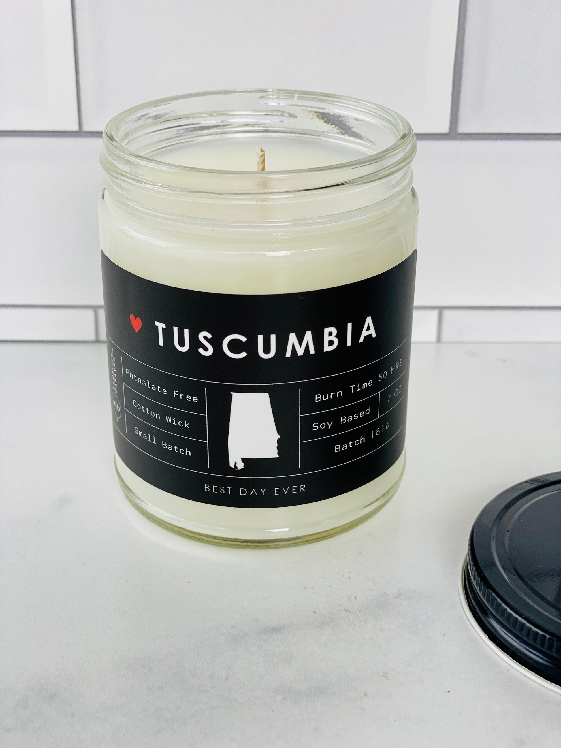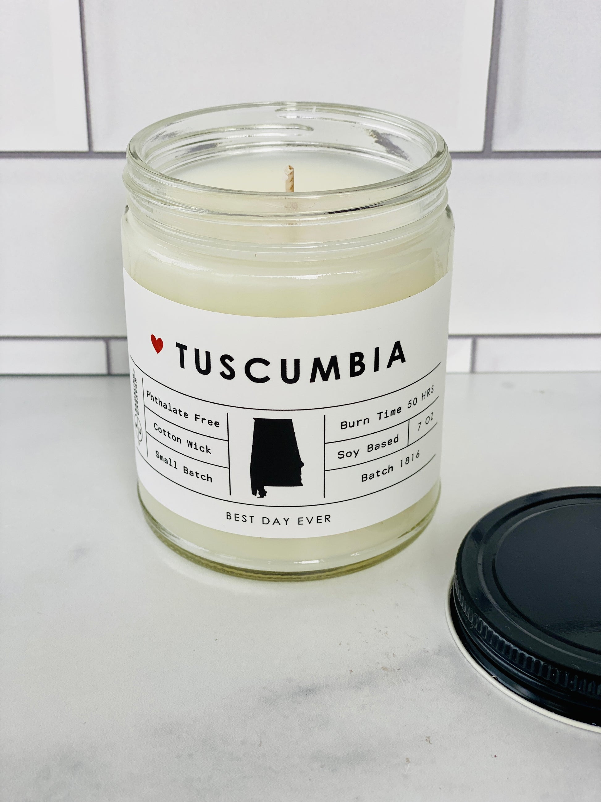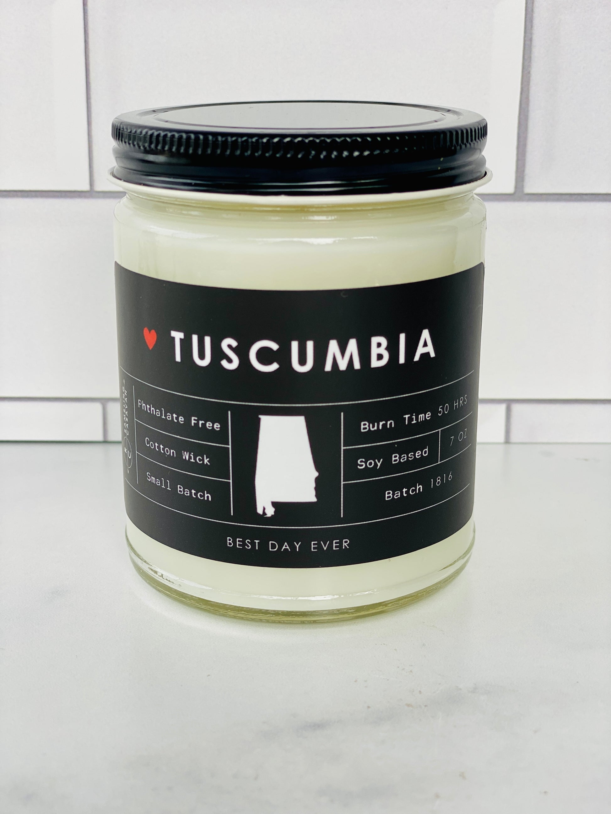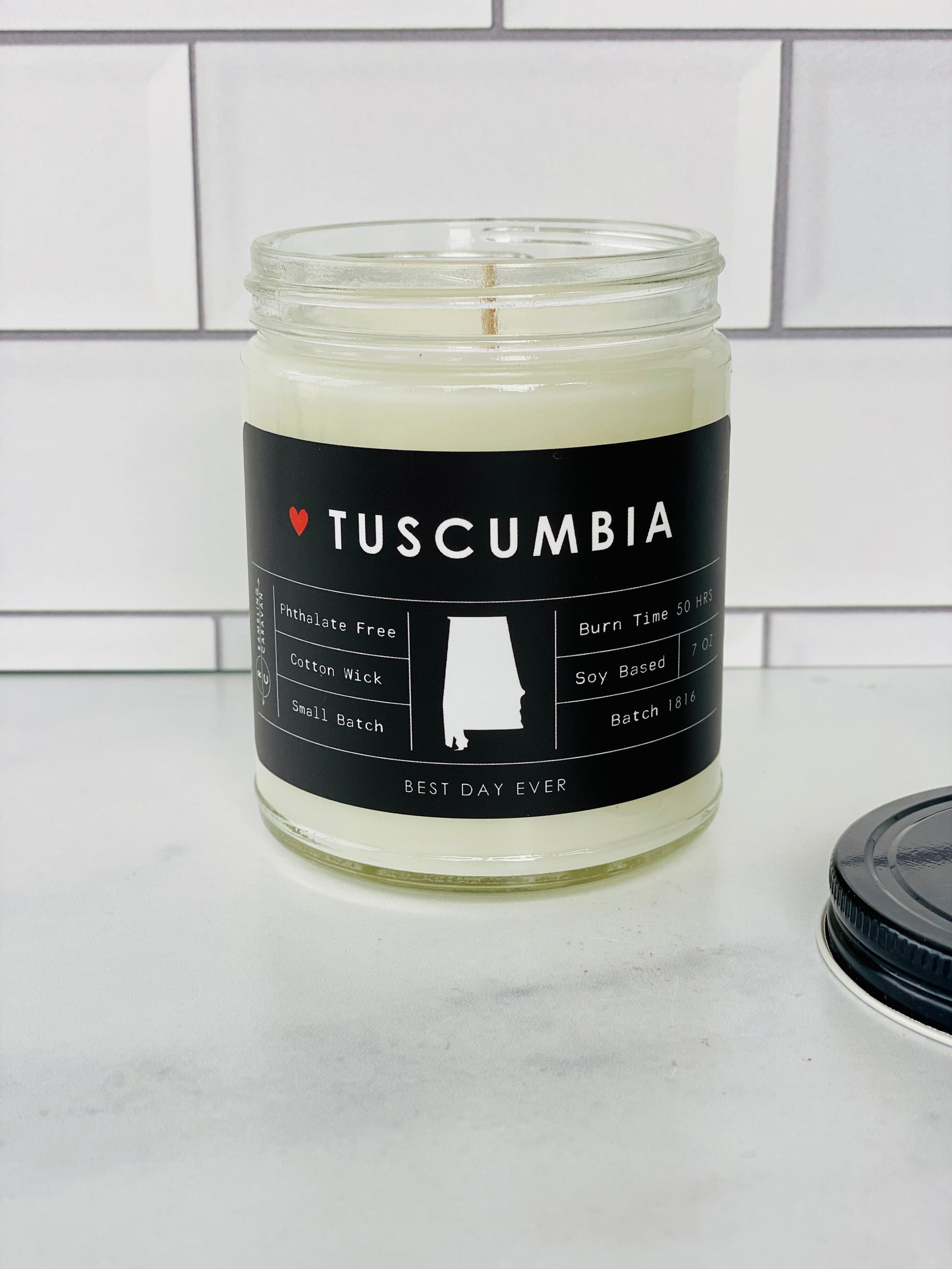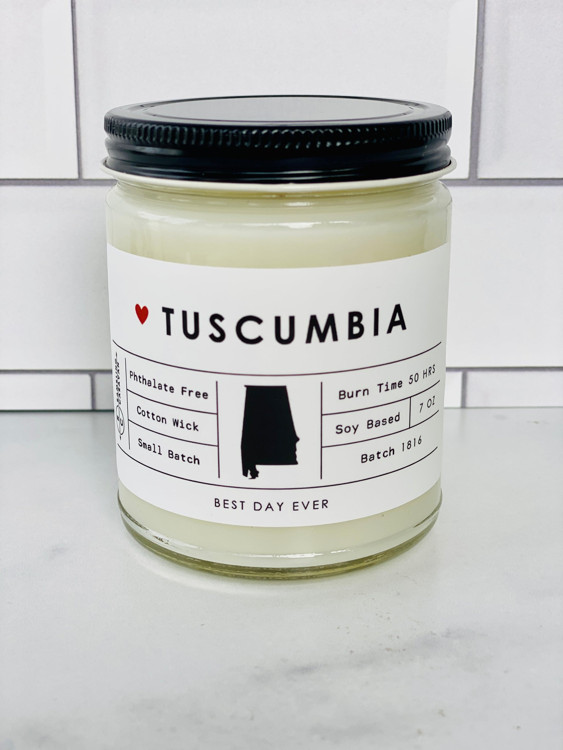 Tuscumbia, Alabama Candle - Rambling Caravan candles are inspired by home, travel and adventure. Made from a soy/coconut based wax blend, the candles are hand poured in Virginia Beach, Virginia. We use phthalate free fragrances and have an assortment of fragrances from which to choose. Many of our candles have different color labels to choose from as well. We use cotton wicks with no zinc or lead. We do not use additives, nor scent enhancers or UV blockers. The burn time is approximately 50 hours.