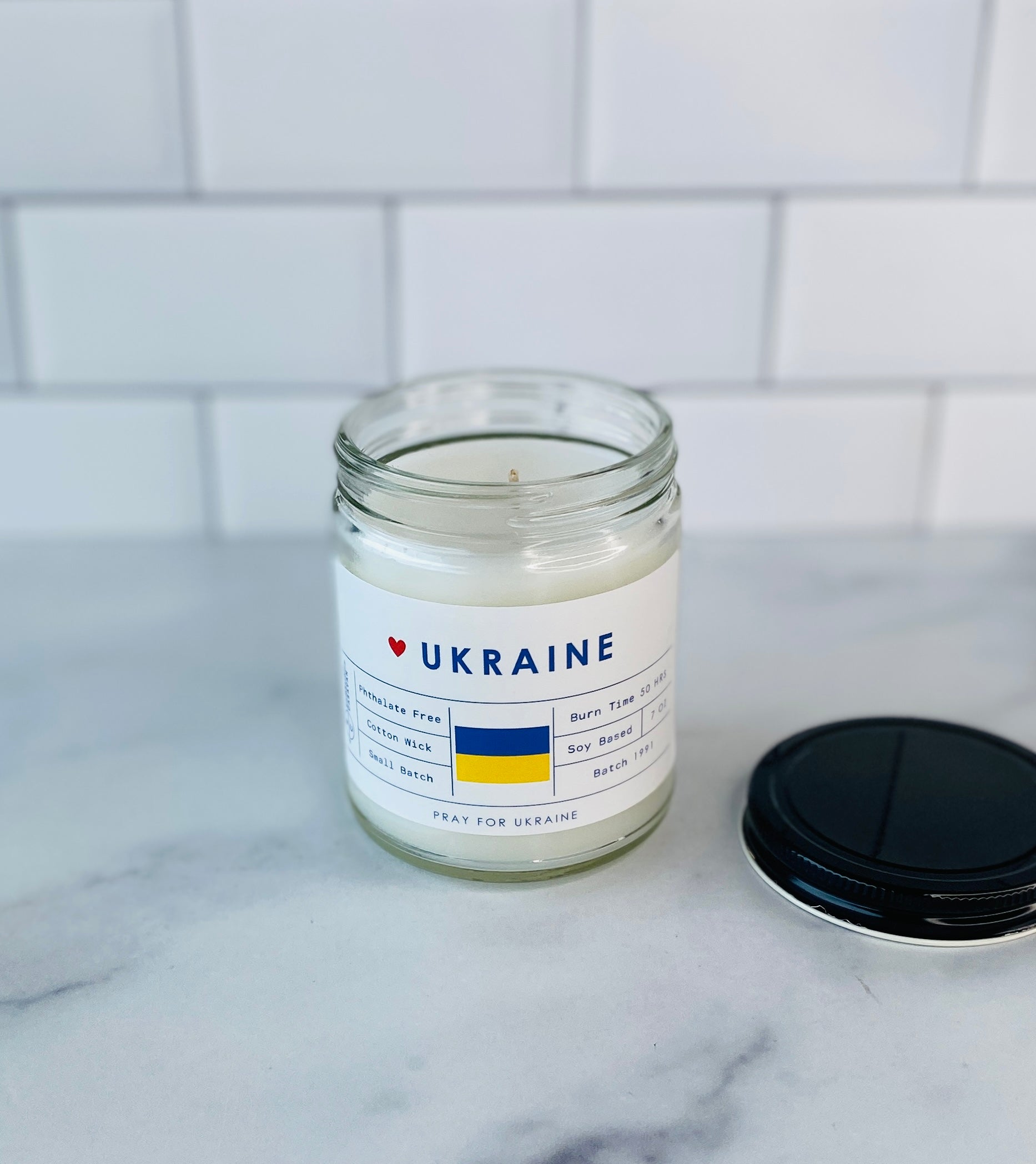 Ukraine Candle - Rambling Caravan candles are inspired by home, travel and adventure. Made from a soy/coconut based wax blend, the candles are hand poured in Virginia Beach, Virginia. We use phthalate free fragrances and have an assortment of fragrances from which to choose. Many of our candles have different color labels to choose from as well. We use cotton wicks with no zinc or lead. We do not use additives, nor scent enhancers or UV blockers. The burn time is approximately 50 hours.
