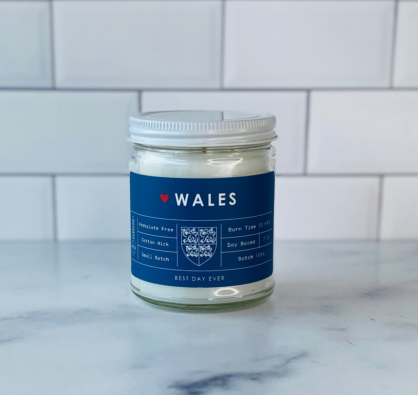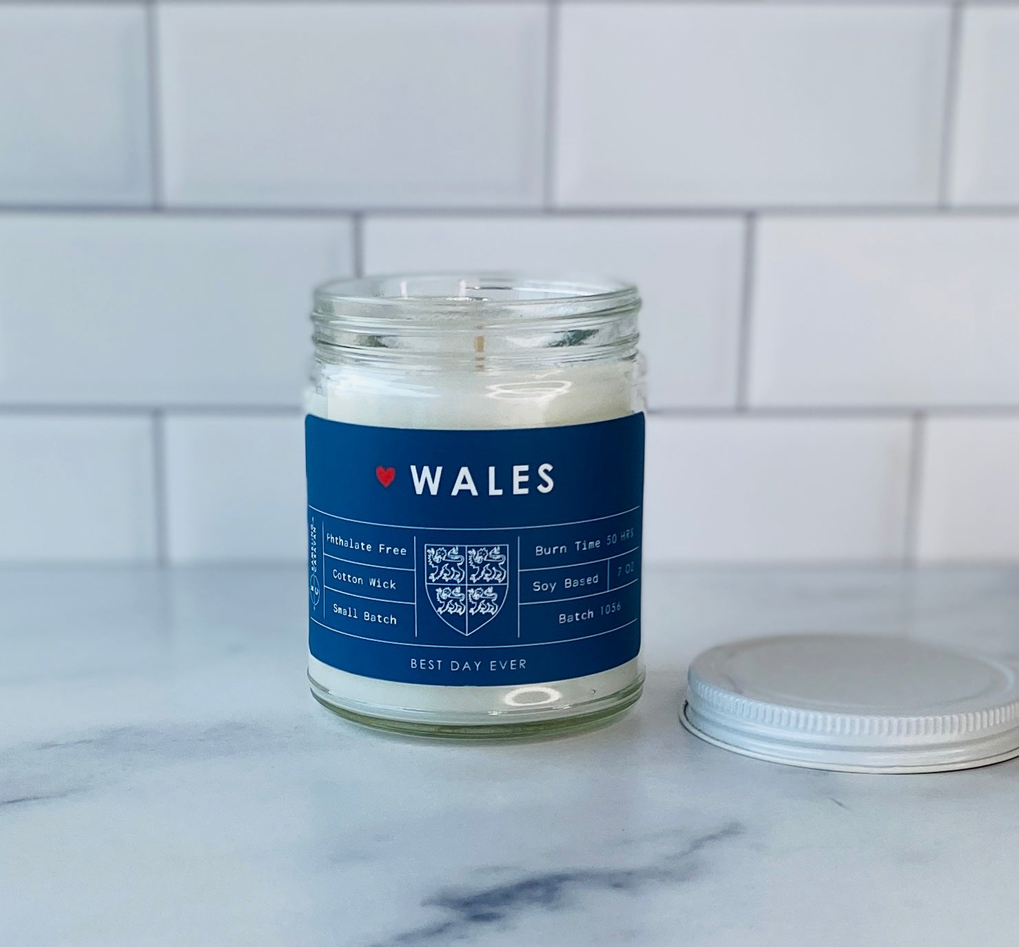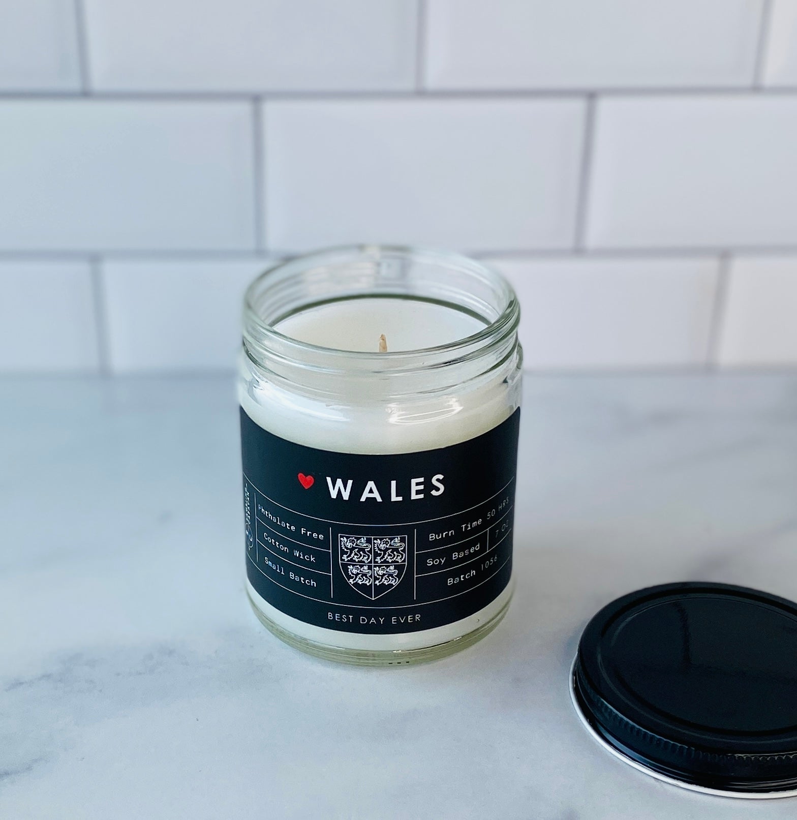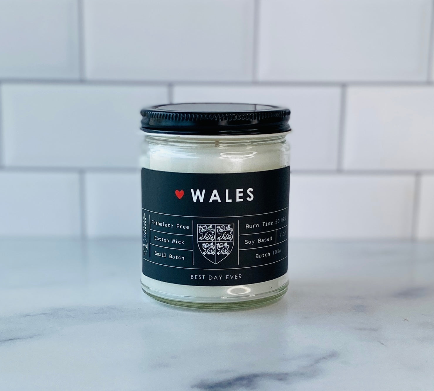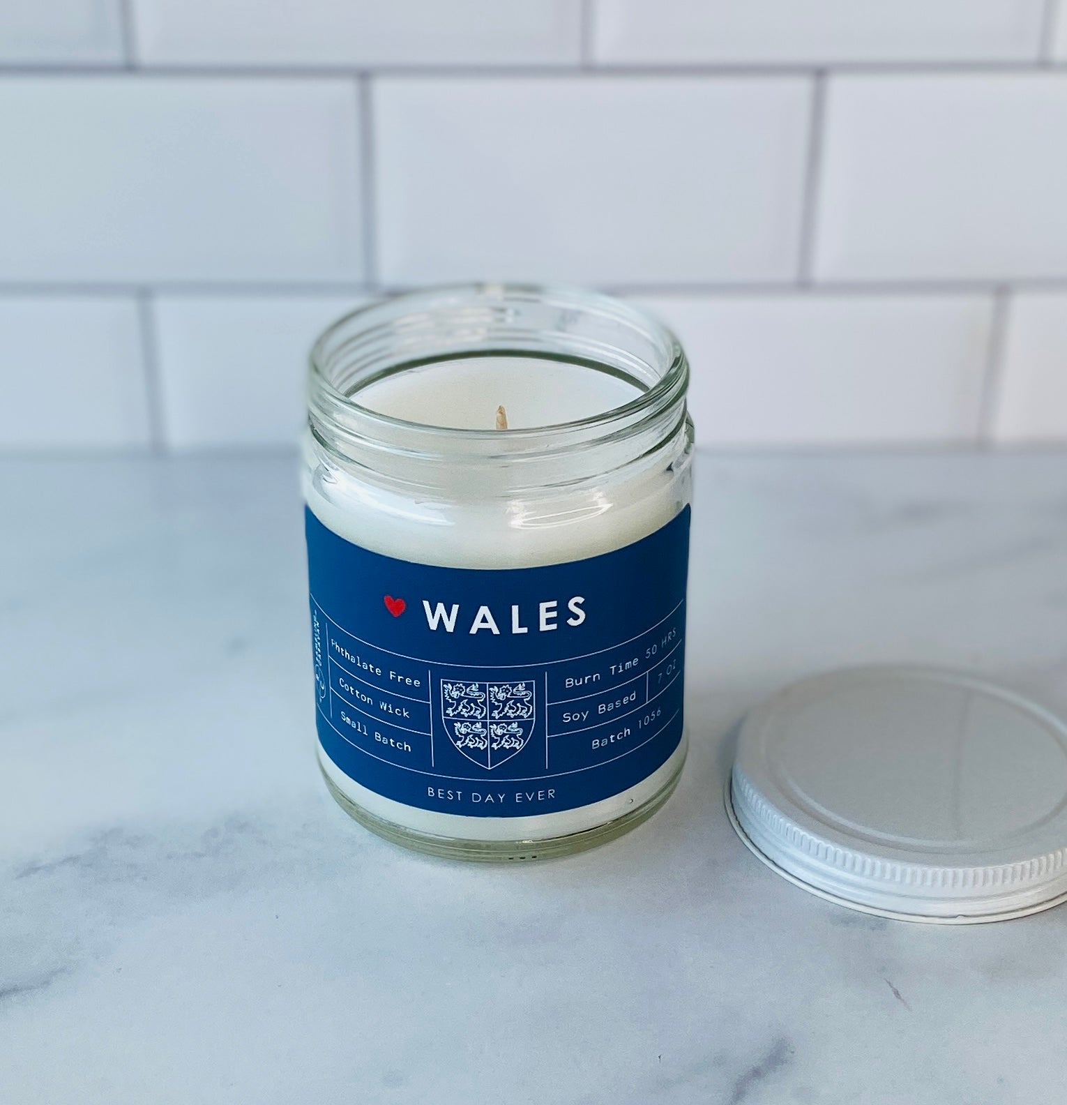 Wales Candle - Rambling Caravan candles are inspired by home, travel and adventure. Made from a soy/coconut based wax blend, the candles are hand poured in Virginia Beach, Virginia. We use phthalate free fragrances and have an assortment of fragrances from which to choose. Many of our candles have different color labels to choose from as well. We use cotton wicks with no zinc or lead. We do not use additives, nor scent enhancers or UV blockers. The burn time is approximately 50 hours.