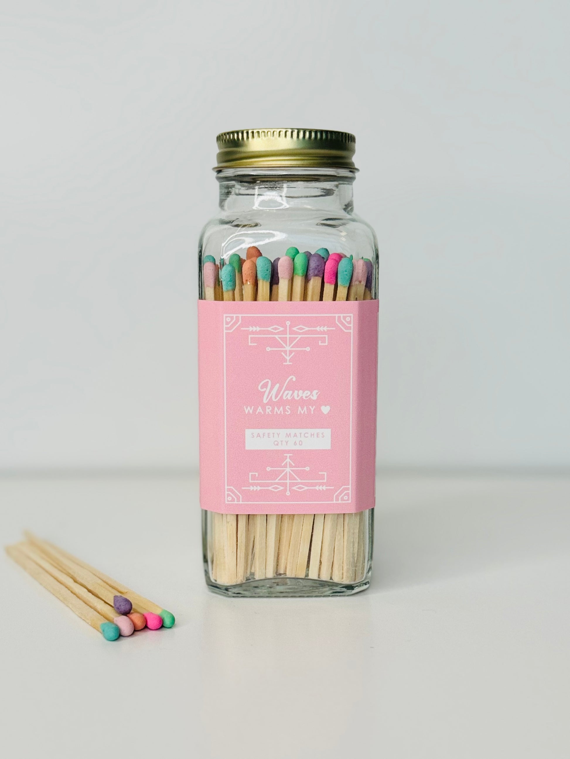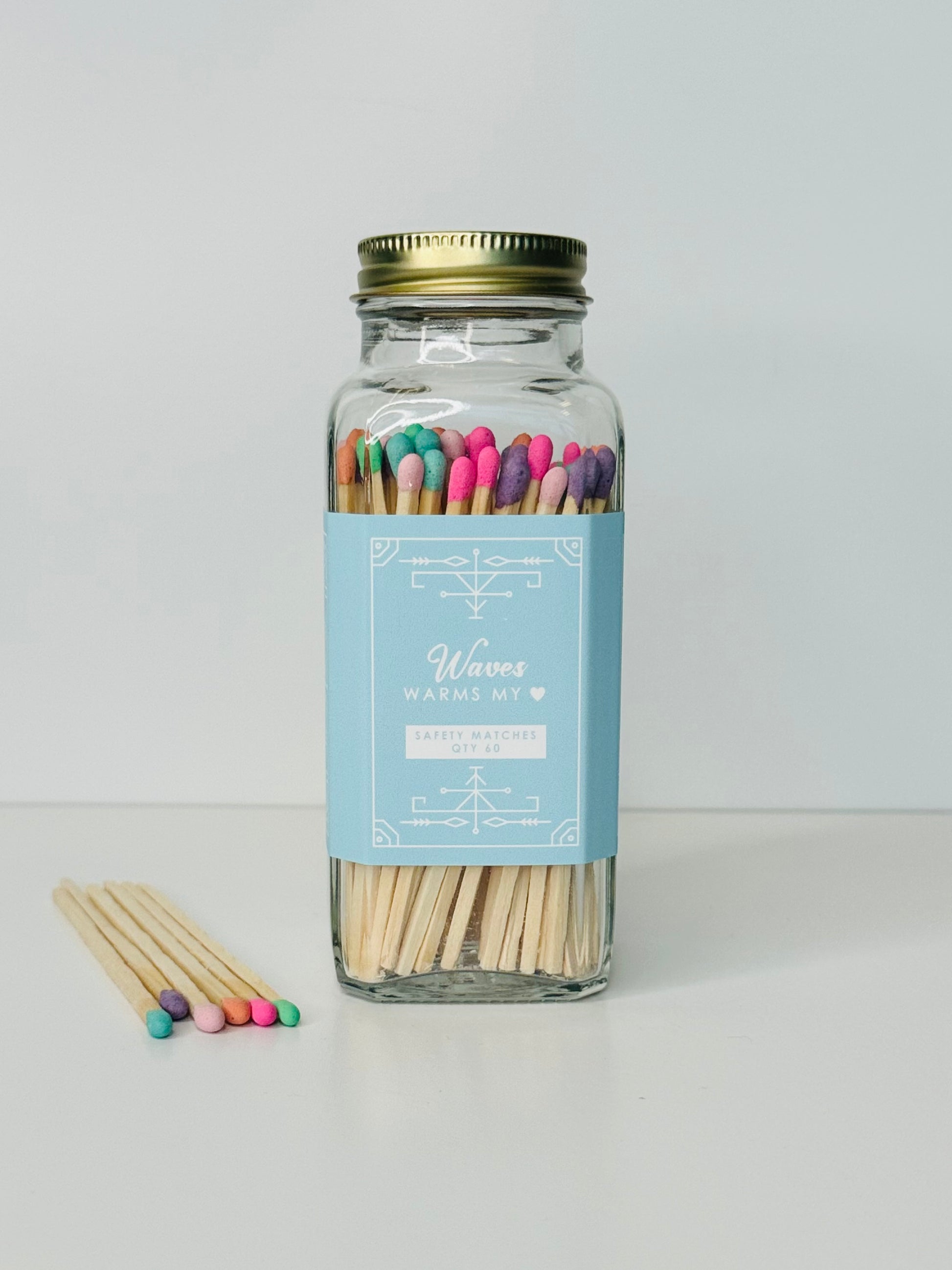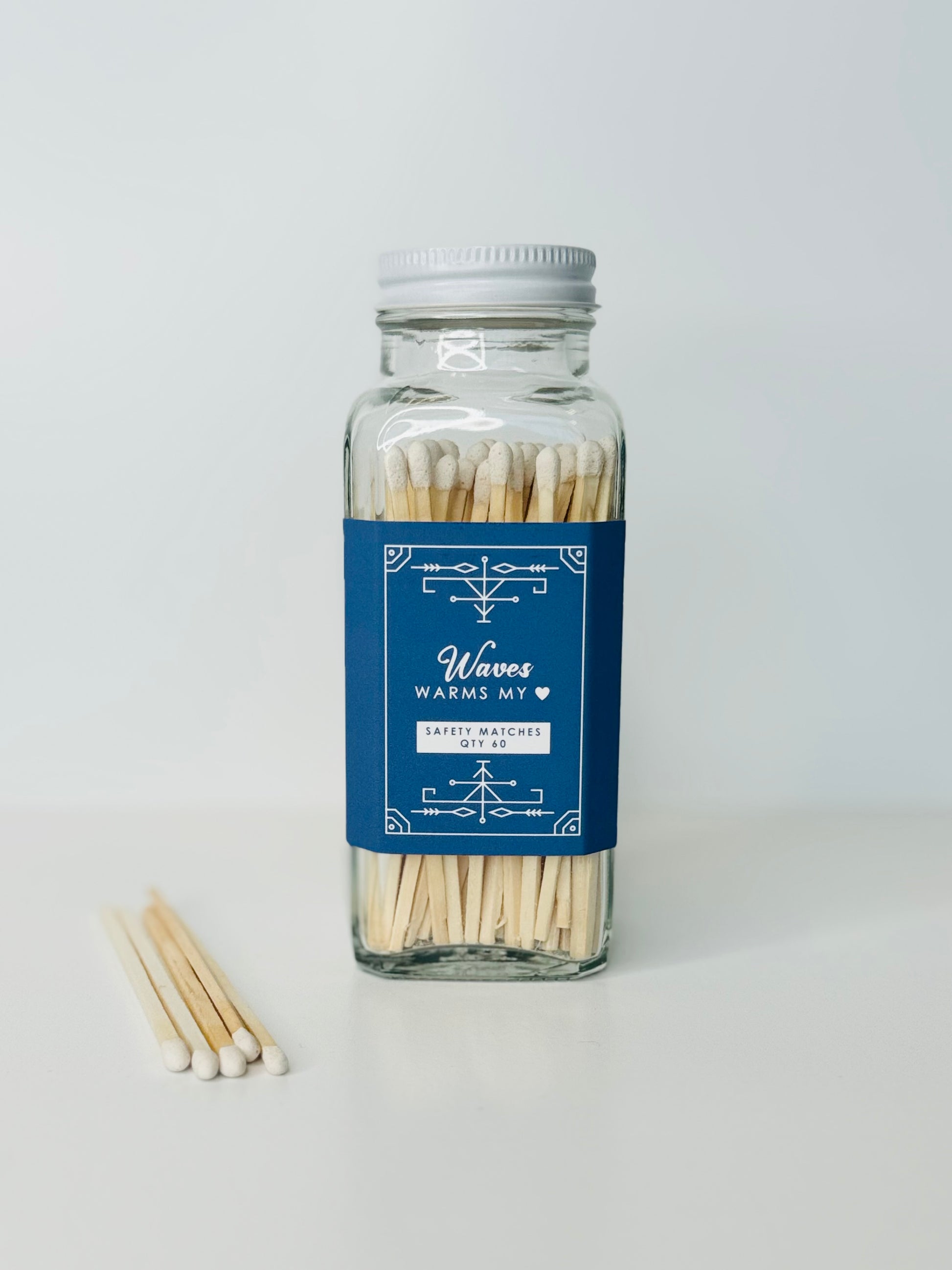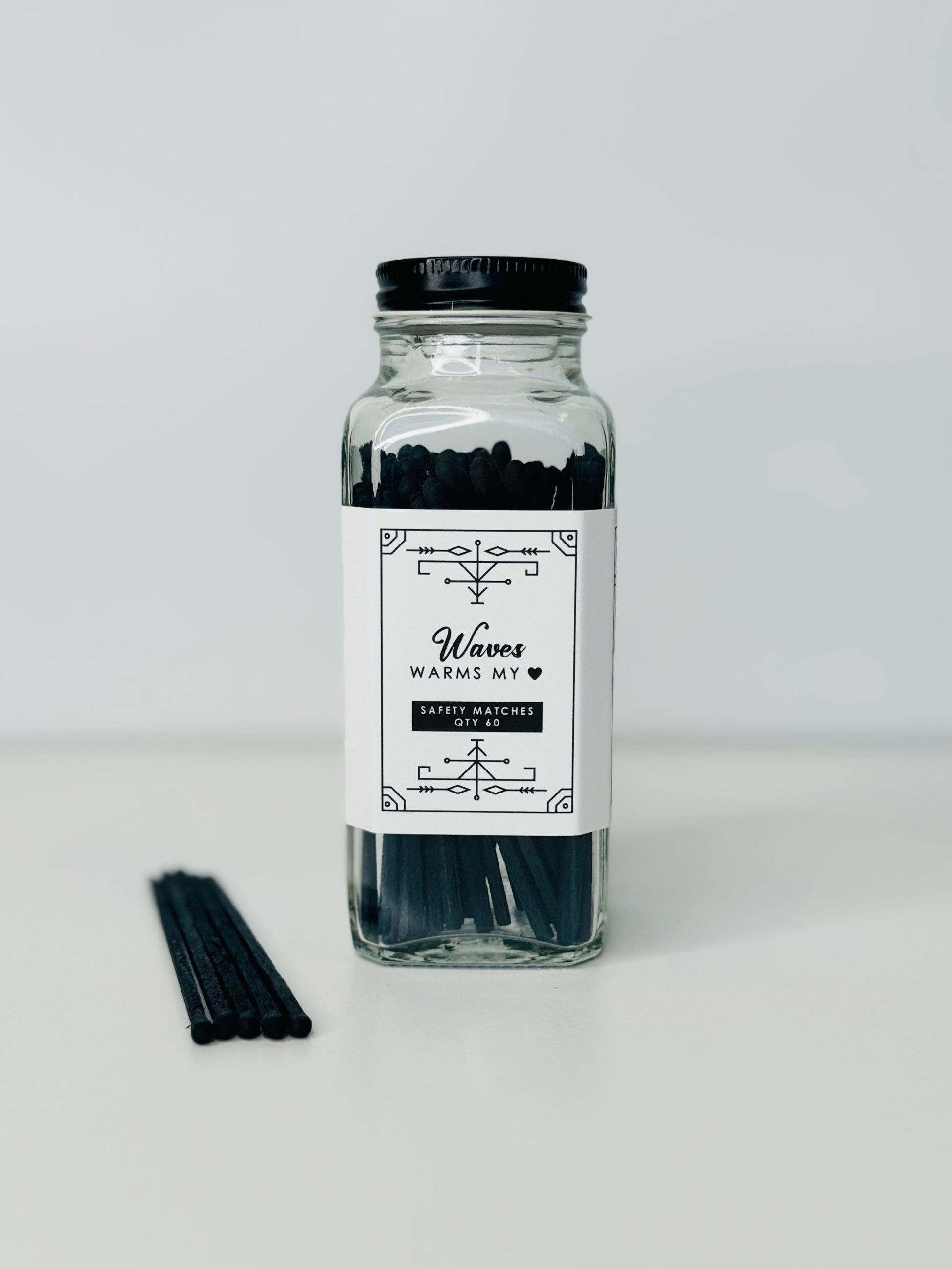 Our stylish safety matches are the perfect gift along side one of our soy coconut wax candles. Each clear jar contains 60 matches with a striker located on the bottom. Be sure to use caution and handle with care. Close the bottle before striking the match. Always keep out of reach of children and pets.