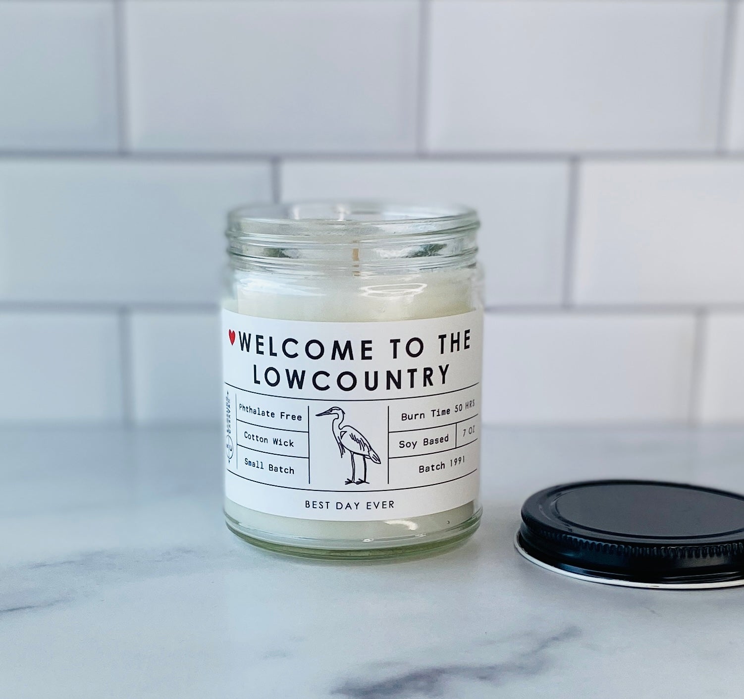 Welcome To The Lowcountry Candle - Rambling Caravan candles are inspired by home, travel and adventure. Made from a soy/coconut based wax blend, the candles are hand poured in Virginia Beach, Virginia. We use phthalate free fragrances and have an assortment of fragrances from which to choose. Many of our candles have different color labels to choose from as well. We use cotton wicks with no zinc or lead. We do not use additives, nor scent enhancers or UV blockers. The burn time is approximately 50 hours.