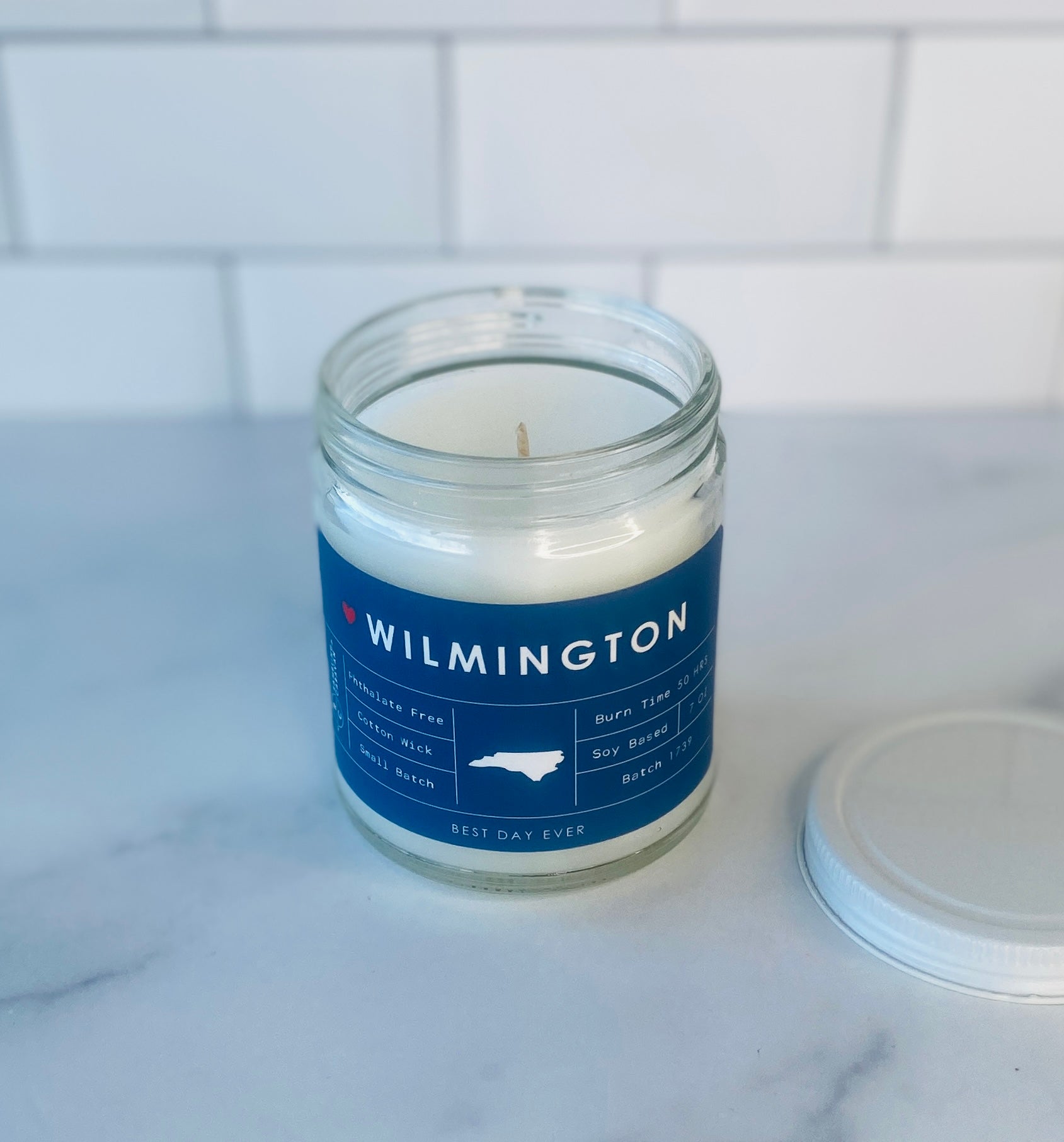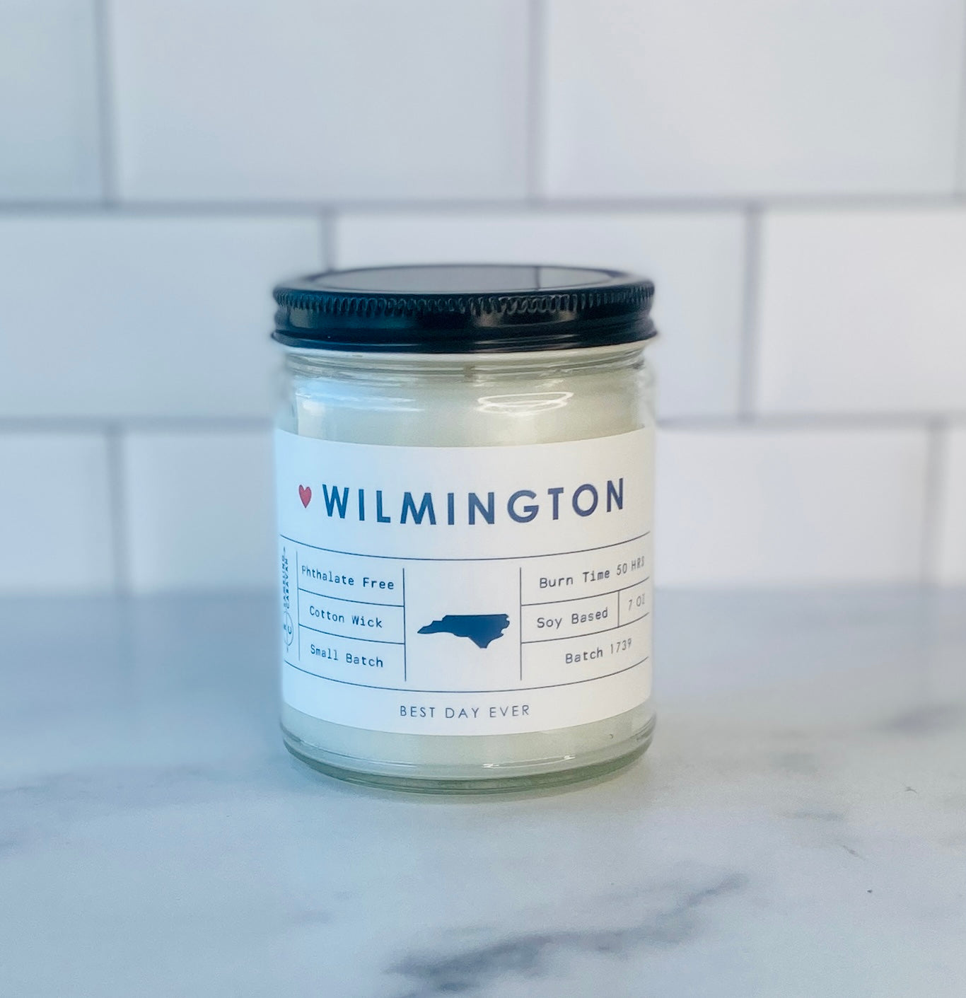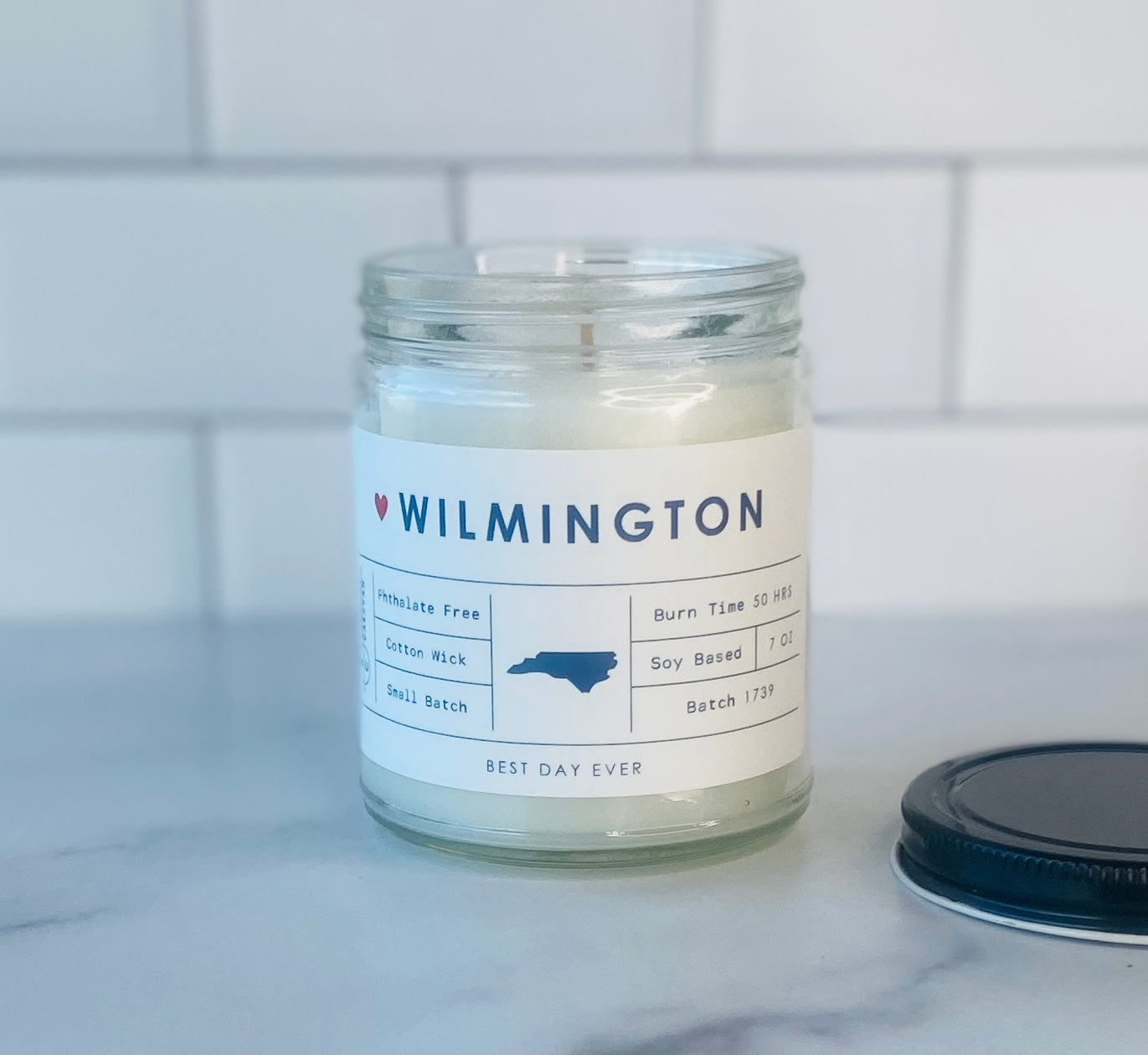 Wilmington, North Carolina Candle - Rambling Caravan candles are inspired by home, travel and adventure. Made from a soy/coconut based wax blend, the candles are hand poured in Virginia Beach, Virginia. We use phthalate free fragrances and have an assortment of fragrances from which to choose. Many of our candles have different color labels to choose from as well. We use cotton wicks with no zinc or lead. We do not use additives, nor scent enhancers or UV blockers. The burn time is approximately 50 hours.