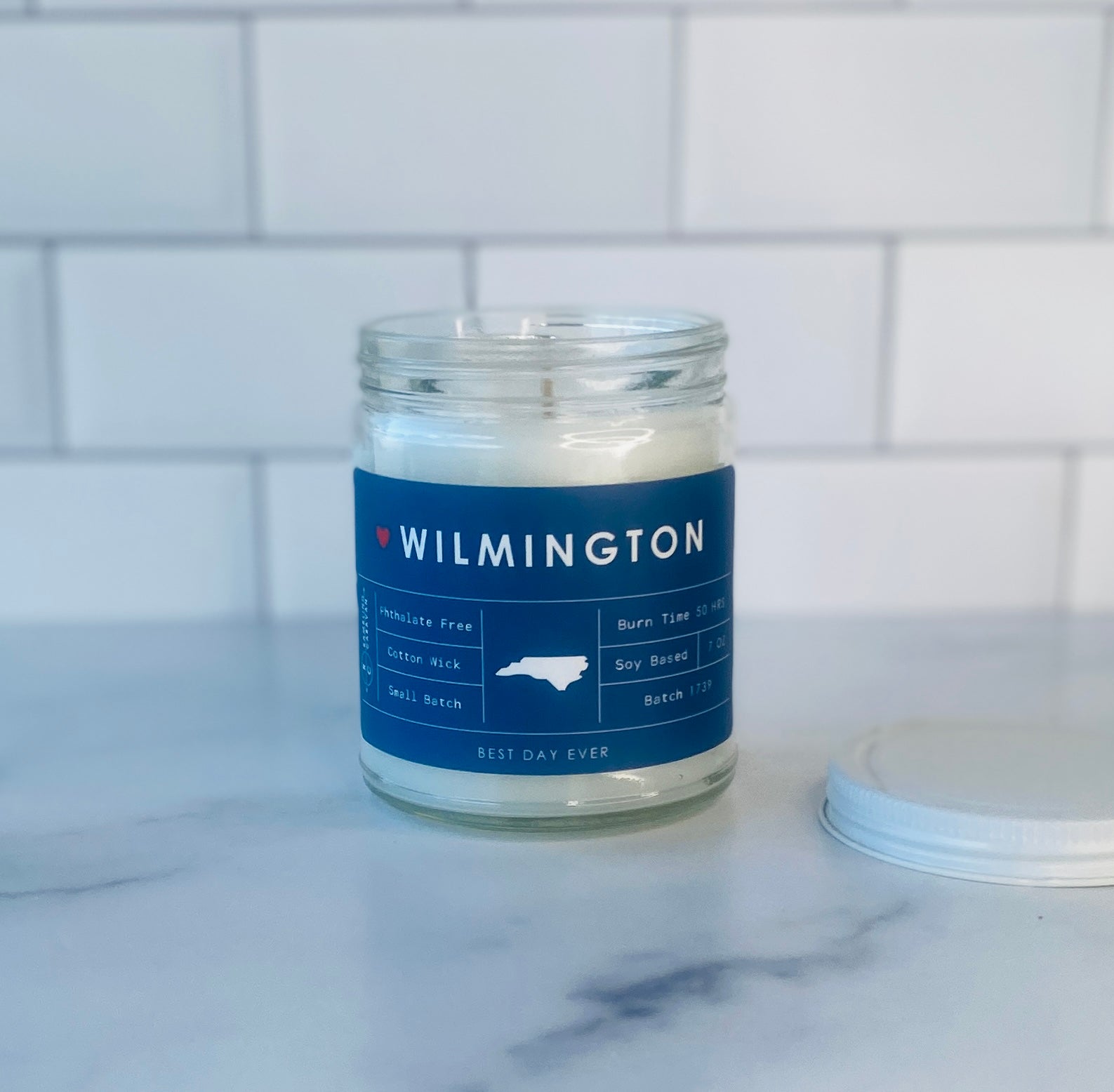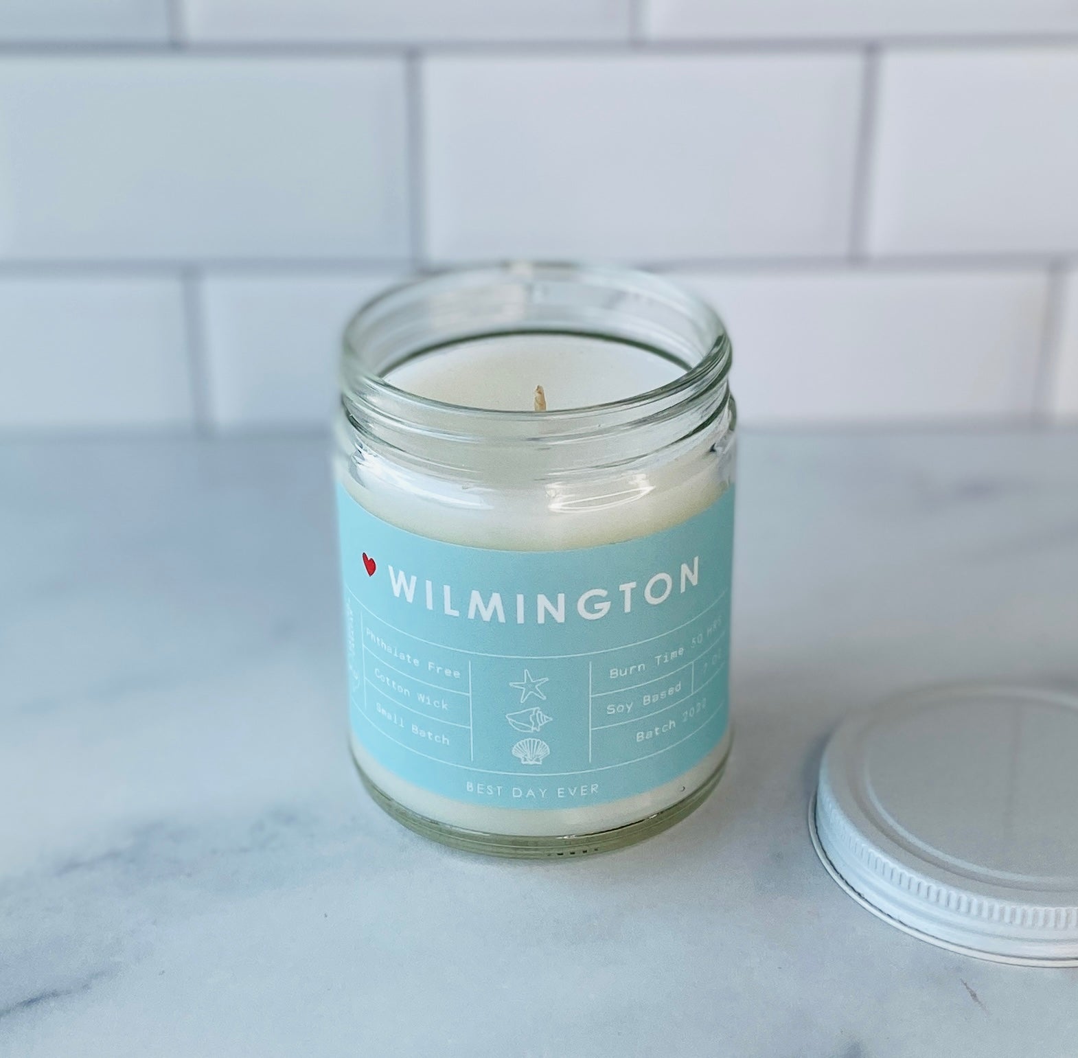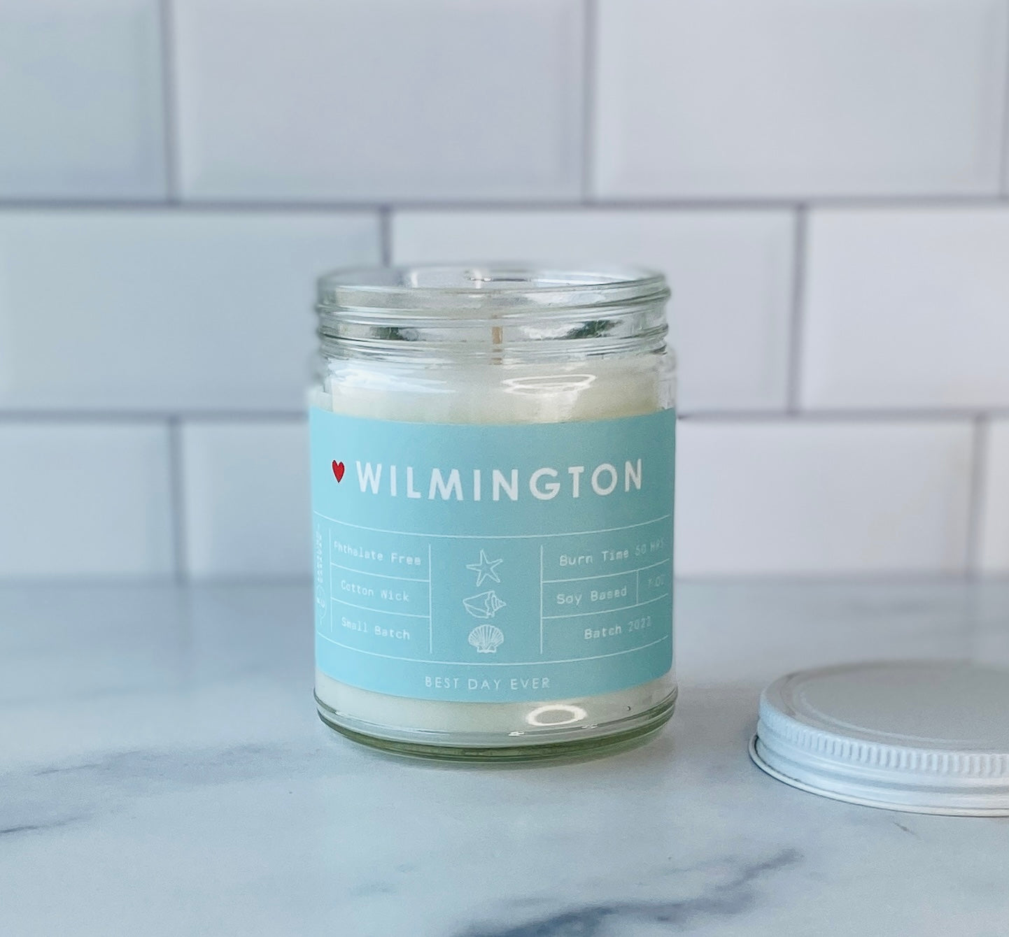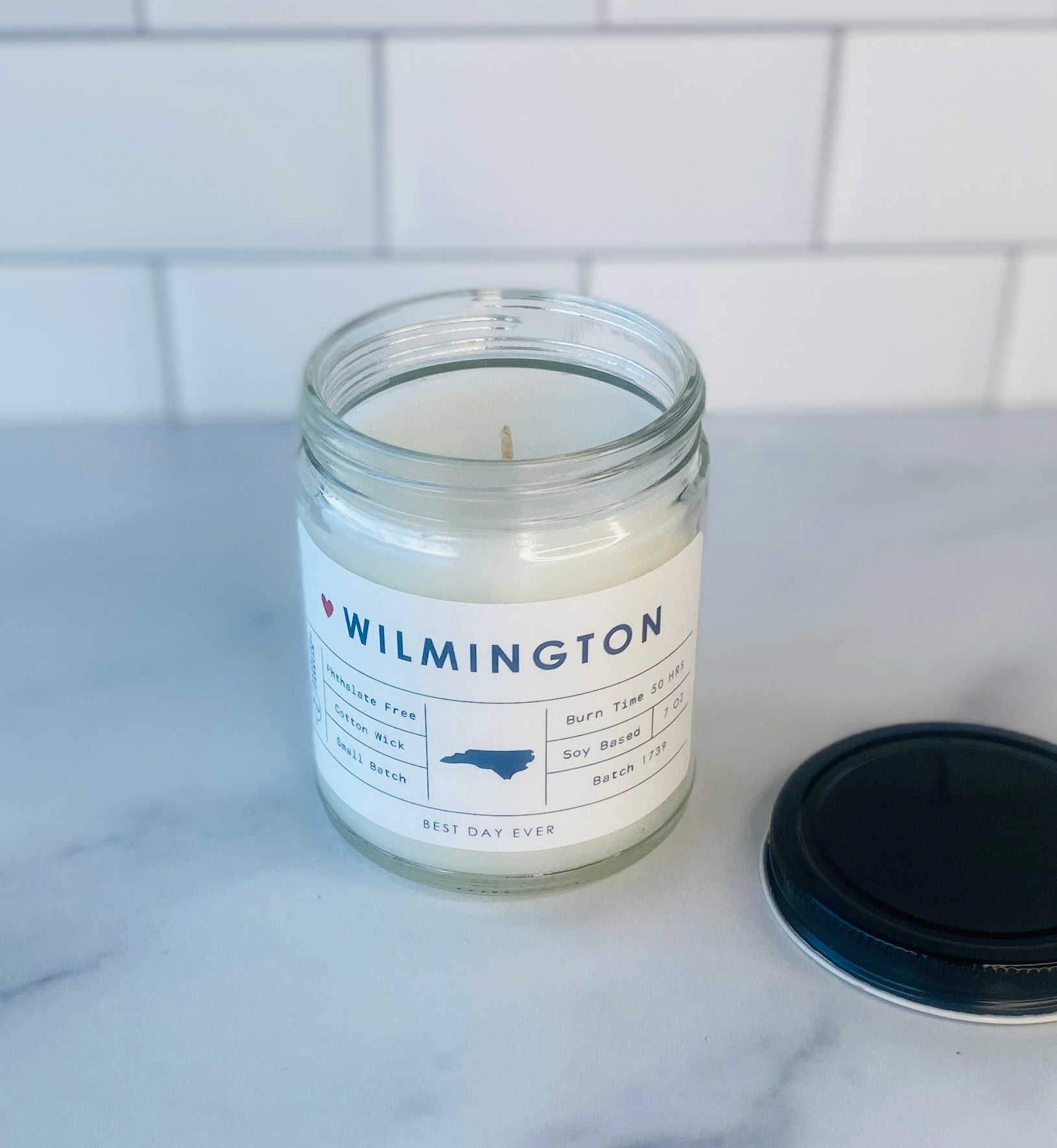 Wilmington, North Carolina Candle - Rambling Caravan candles are inspired by home, travel and adventure. Made from a soy/coconut based wax blend, the candles are hand poured in Virginia Beach, Virginia. We use phthalate free fragrances and have an assortment of fragrances from which to choose. Many of our candles have different color labels to choose from as well. We use cotton wicks with no zinc or lead. We do not use additives, nor scent enhancers or UV blockers. The burn time is approximately 50 hours.