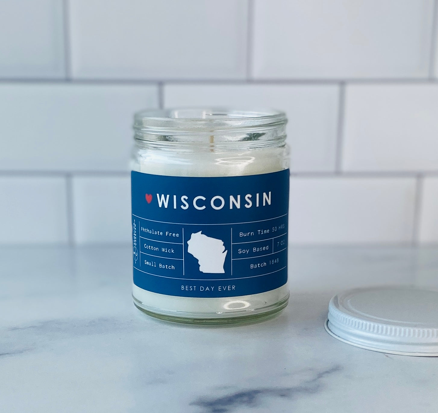 Wisconsin Candle - Celebrating America's Dairyland State! - Rambling Caravan candles are inspired by home, travel and adventure. Made from a soy/coconut based wax blend, the candles are hand poured in Virginia Beach, Virginia. We use phthalate free fragrances and have an assortment of fragrances from which to choose. Many of our candles have different color labels to choose from as well. We use cotton wicks with no zinc or lead. We do not use additives, nor scent enhancers or UV blockers. The burn time is approximately 50 hours.